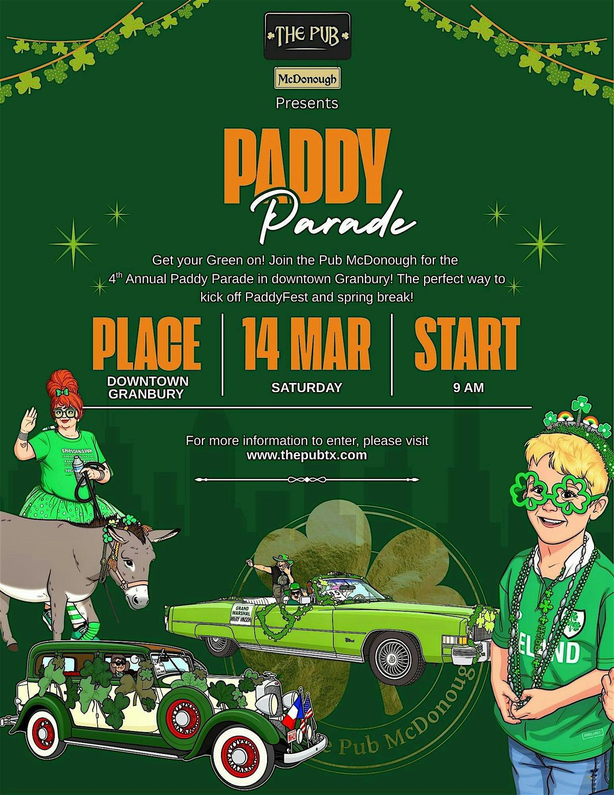 Get your GREEN out and join THE PUB MCDONOUGH for the 4th annual PADDY PARADE in downtown Granbury TX!About this Event