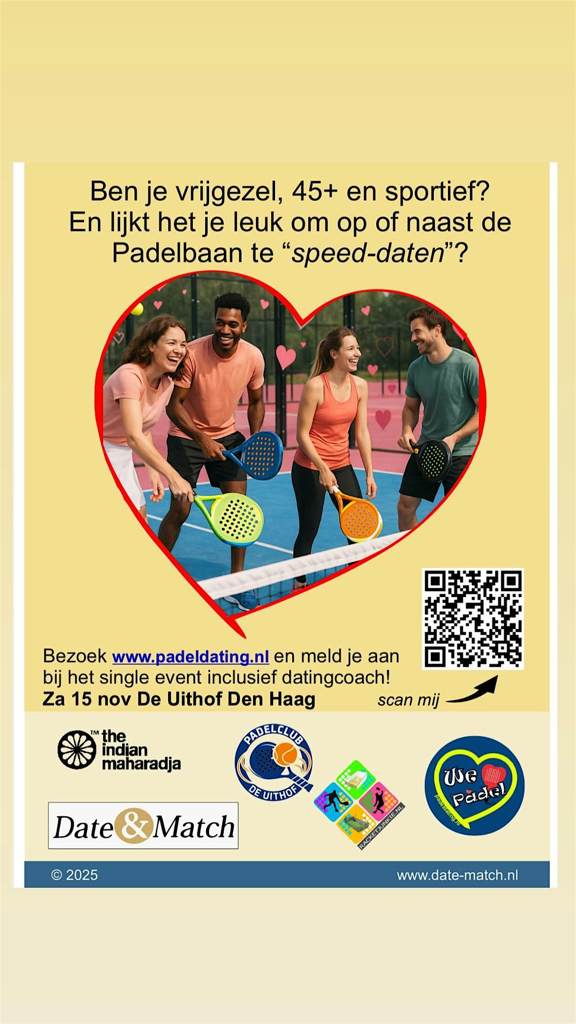 Hey there singles over 45! Ready to mingle and have some fun on the court? Join us at padelclub de Uithof for an exciting padel event just for you.