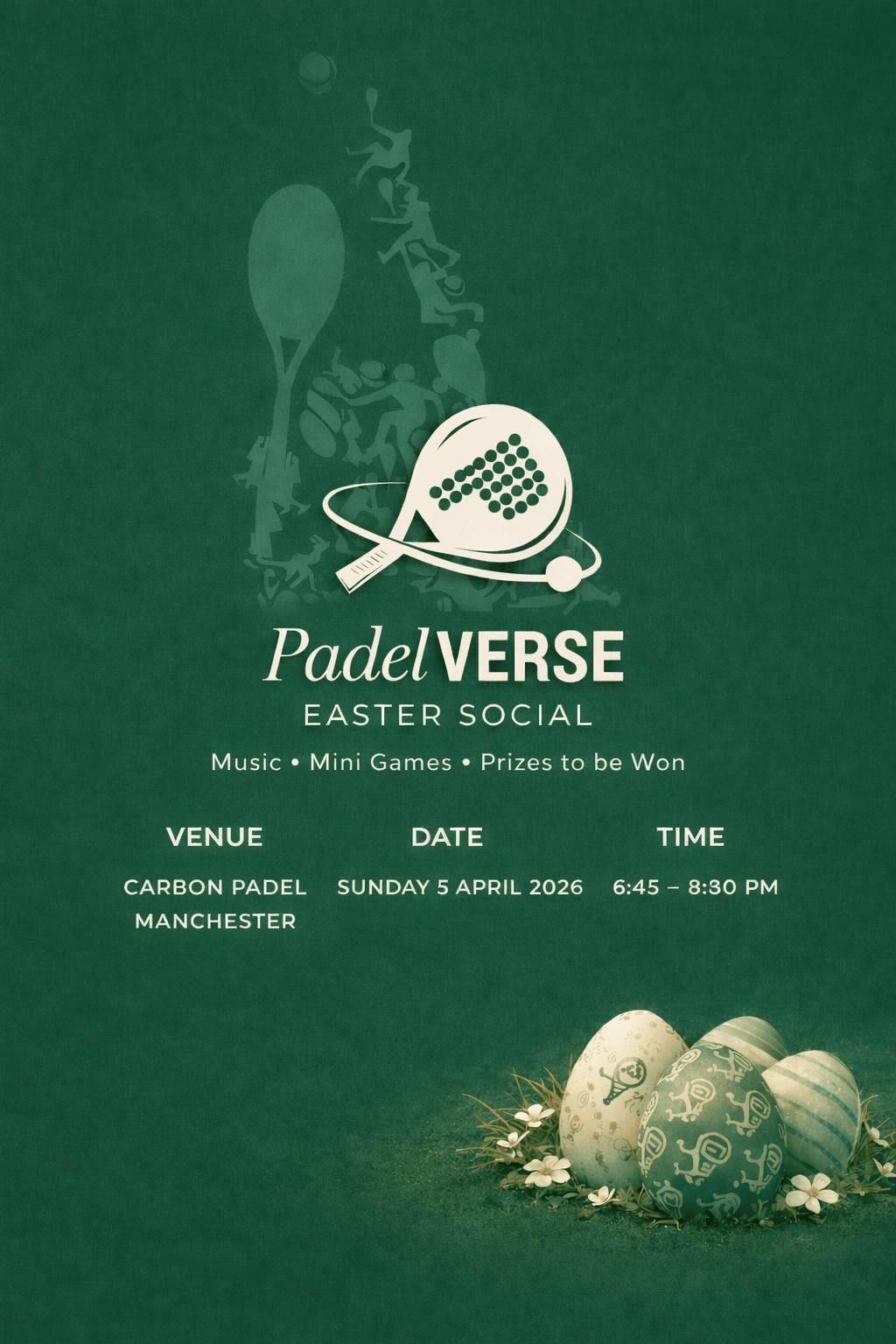 Join us for a special PadelVerse Easter Social — an evening of padel, music, and great energy. Whether you're coming to compete, connect, or just enjoy the vibe, expect a well-curated session with a mix of mini games and social play.Rackets & balls provided. Limited spaces available.