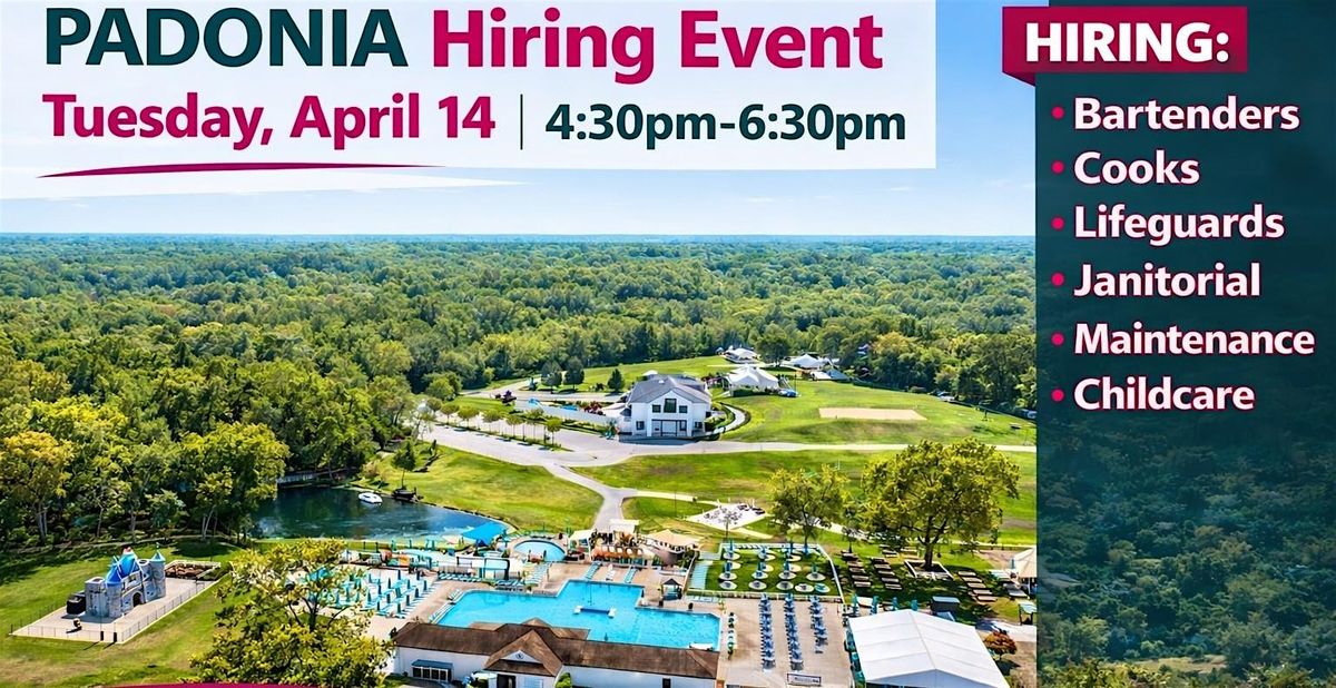 PADONIA Hiring Event: Bartenders, Cooks, Janitorial, Maintenance, Childcare