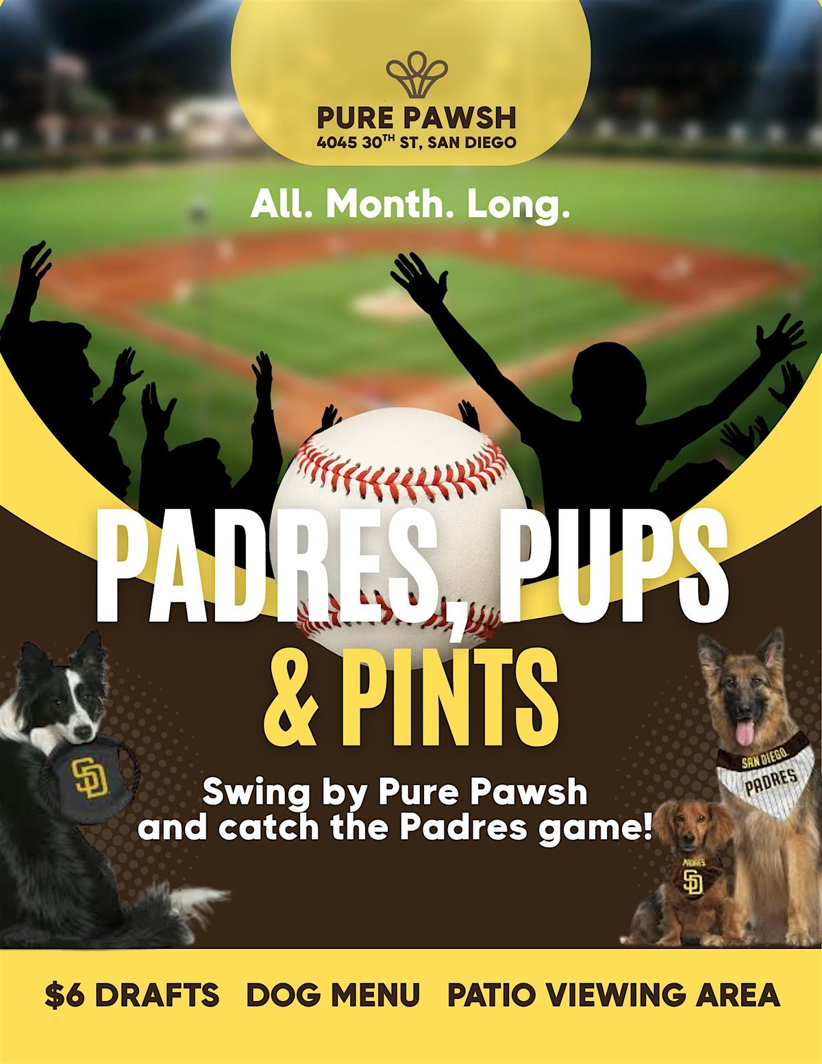 ⚾🐾 Padres, Pups & Pints all May long at Pure Pawsh Dog Bar 🍻