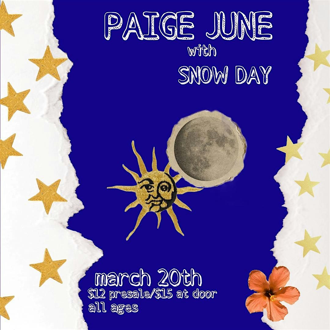 Paige June and Snow Day live at The Hive. All Ages, No Drugs, No Alcohol. Alternative genre music. Doors 6:30PM, Show at 7PM