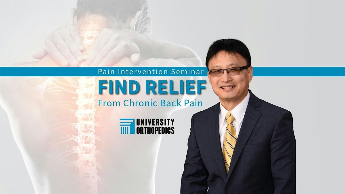 Oral opioids are not the only option for treating your chronic pain. In this free, live seminar, you’ll hear from University Orthopedics Interventional Pain and Spine physician, Dr. S. Chris Tian, on proven chronic pain treatments that can improve your quality of life. This event will help you learn about therapy options, how you can trial therapies to see if they are right for you, and help you understand the risks and benefits behind the therapies.