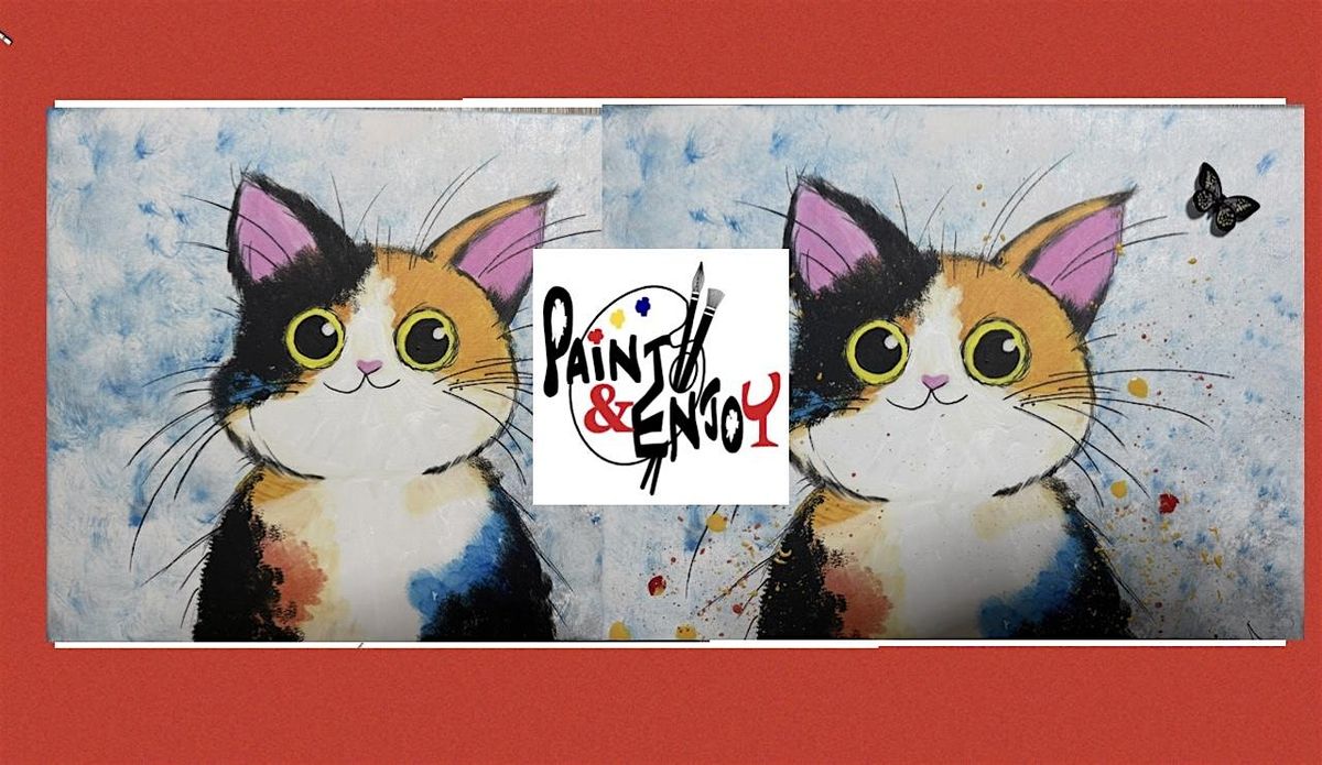 We’ll be painting an adorable cat on canvas titled “Play With Me”—perfect for all ages and skill levels.