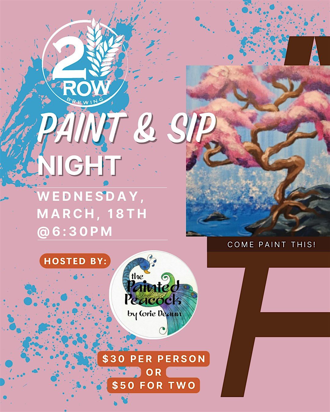 Join us for a fun and relaxing evening of creativity and craft brews at 2 Row Brewing on March 18th from 6:30 PM to 9:00 PM!