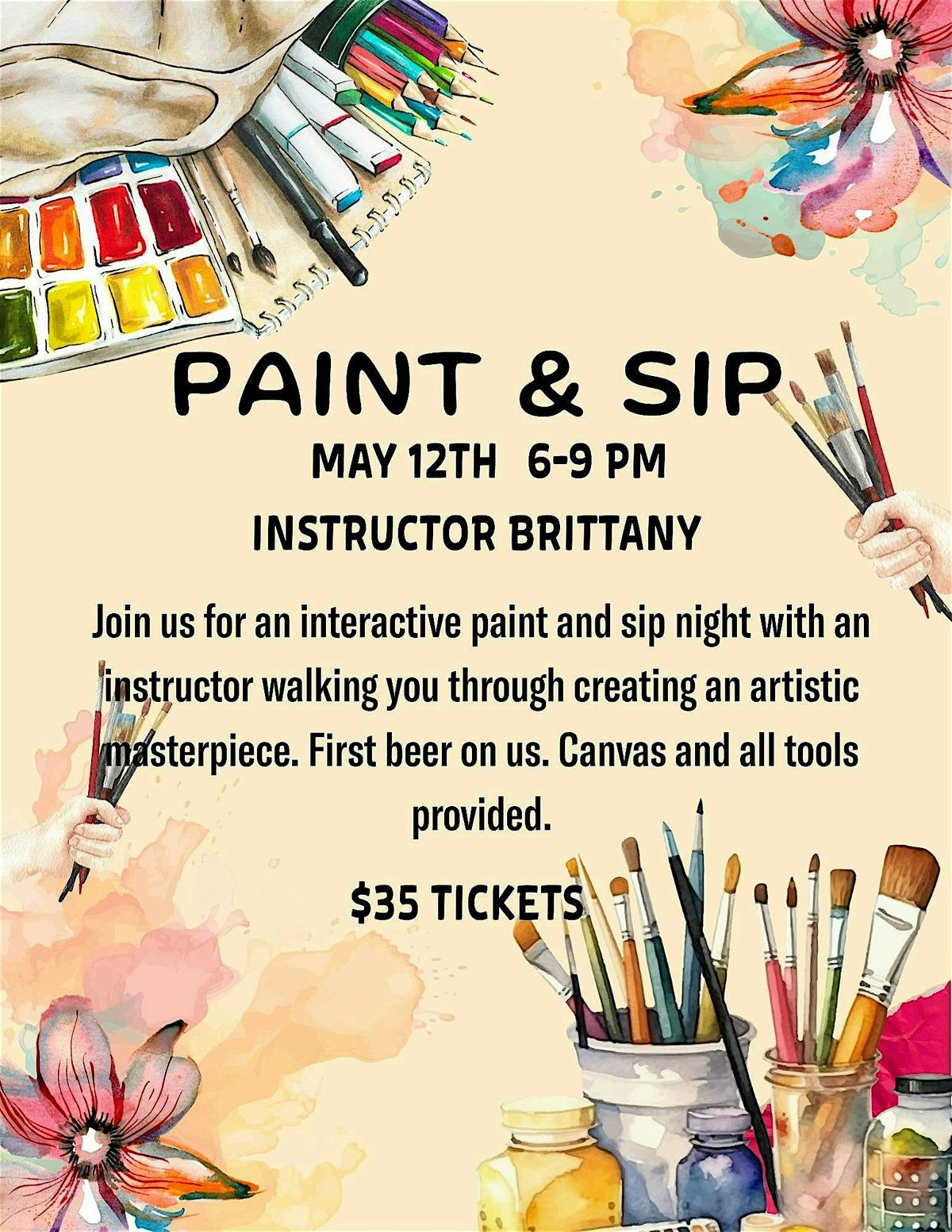 Unleash your inner artist! Sip, swirl, and paint the night away—no experience needed, just good vibes and great beer. 6-9pm. $35 Tickets.