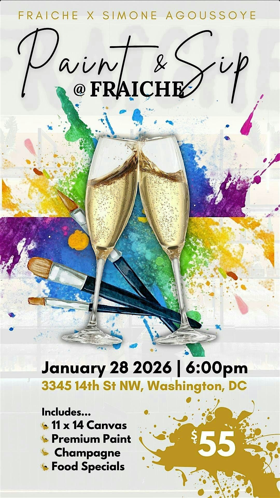 Join us at Fraiche for a fun Paint and Sip Workshop with live instruction from Simone Agoussoye, where creativity meets relaxation!
