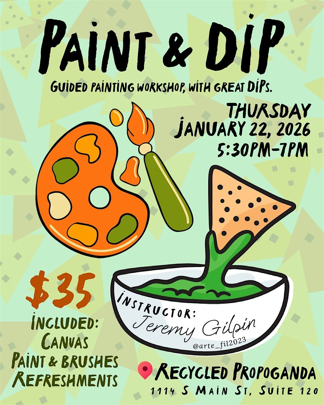 Guided painting Workshop with Great Dips. Painting supplies & refreshments included.