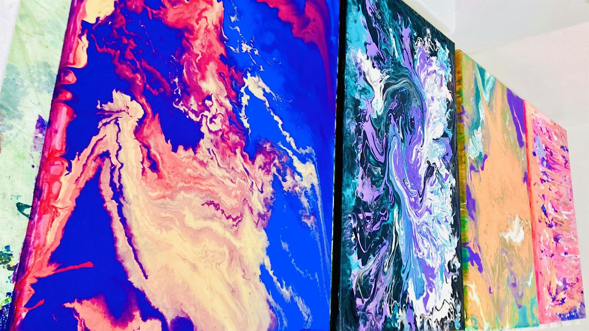 Our acrylic pouring event creates a space for creative expression in the inspiring atmosphere of our studio.