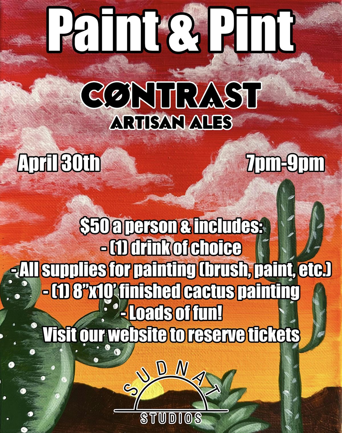 Join us Thursday, April 30th, at @contrast.marietta for a fun night of painting your very own desert cactus scene!