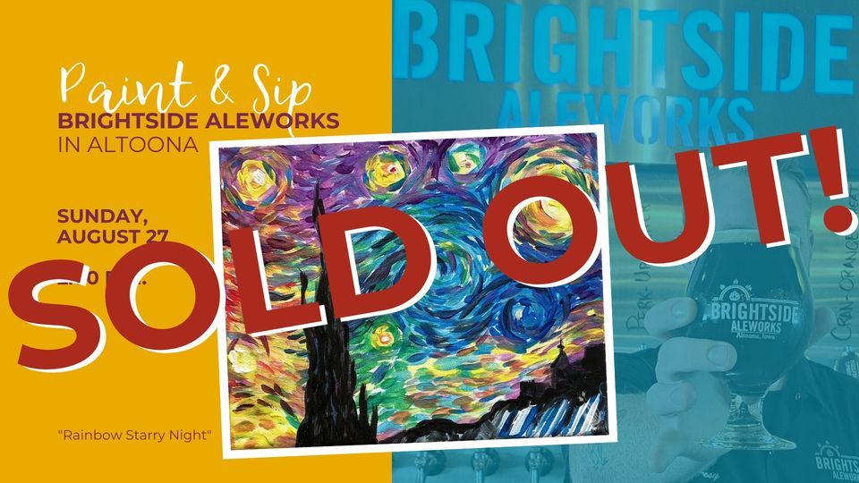 Join us for an afternoon of painting and a drink -- or two! -- at Brightside Aleworks! We're painting "Rainbow Starry Night" on canvas. Registration includes two hours of instruction, all supplies, and an 11x14-inch canvas to take home. Enjoy Brightside Aleworks' full drink menu. You're also welcome to bring your own snacks!