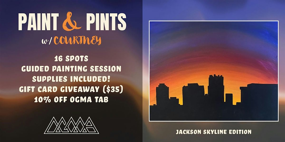 Join us for a "Paint & Pints" session with Courtney as we paint the beautiful Jackson skyline! There are only 16 spots available. All supplies are included with your registration, and you'll take your final piece home to hang proudly. The session will last approximately two hours, and Ogma is offering 10% off your tab for joining. All skill levels welcomed — we're just here for a good time!