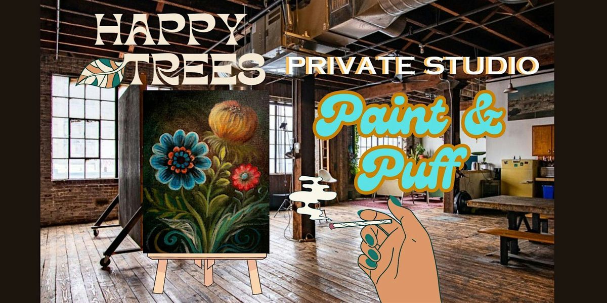 Happy Trees is now offering Paint & Puff classes on select nights in our Private Studio in the West Bottoms. Our spacious loft studio is right upstairs from The Ship. You must be 21+ to attend this class!