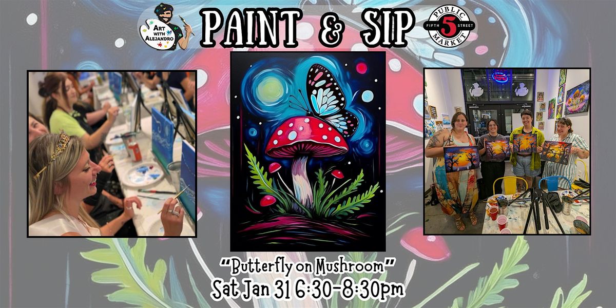 Paint & Sip at 5th St Alley “Butterfly on Mushroom”