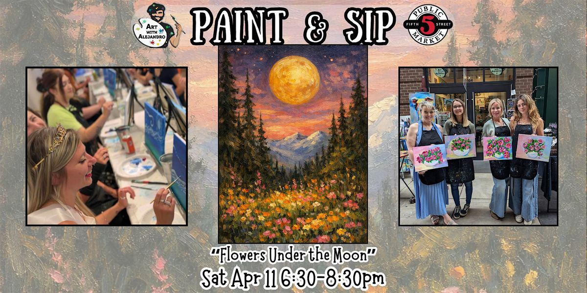 Paint & Sip at 5th St Alley “Flowers Under the Moon”