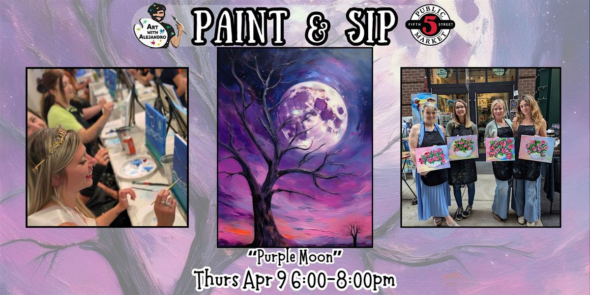 Paint a glowing Purple Moon under a dreamy night sky—rich color, calm vibes, and lots of atmosphere. Perfect for a relaxing evening out. Beginner-friendly with step-by-step guidance and all materials included. Reserve your seat today—limited spots available!