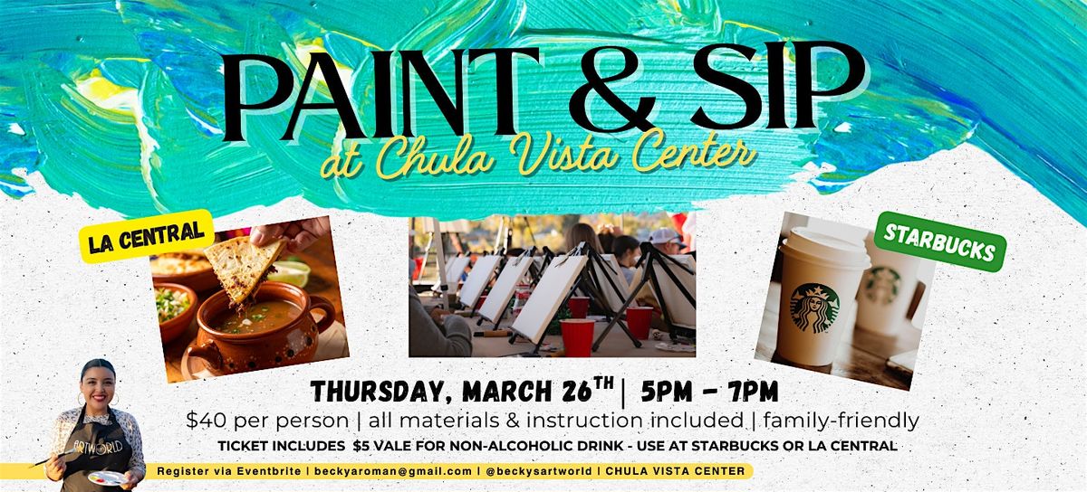 Join us for a fun-filled afternoon of painting, creativity, and good vibes! Whether you're a seasoned artist or just looking to try something new, this event is perfect for everyone. All instruction and step by step instructions included. Ticket includes a $5 value to use at Starbucks or La Central. Bring your friends or family and kids, have fun, and let's make some colorful memories together at the plaza. Don't miss out on this awesome experience!