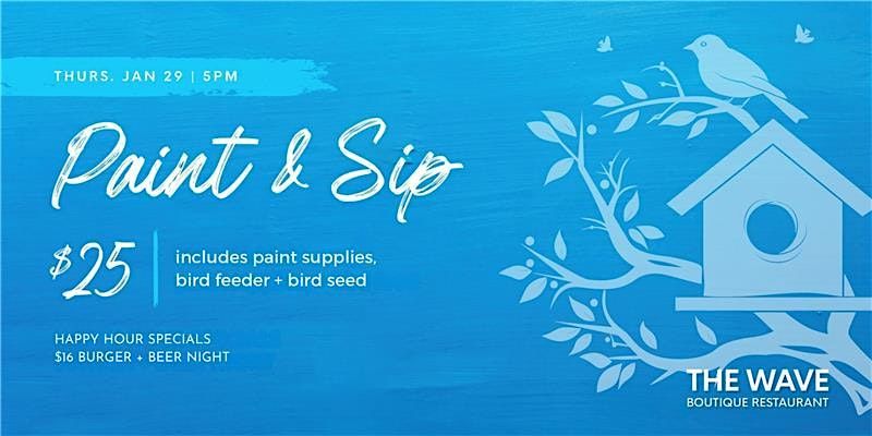 Get creative by the water at The Wave on Marblehead with our Paint & Sip night on January 29th at 5 PM. Guests will enjoy a relaxed, social evening painting their own birdhouse while sipping on drinks and enjoying great food.