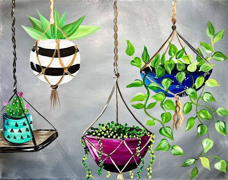 Join us at the Wicked W**d Funkatorium for a relaxed evening of painting, plants, vibes, and great drinks.In this beginner-friendly Paint & Sip, you'll create your own colorful canvas featuring boho hanging plants and macramé planters.