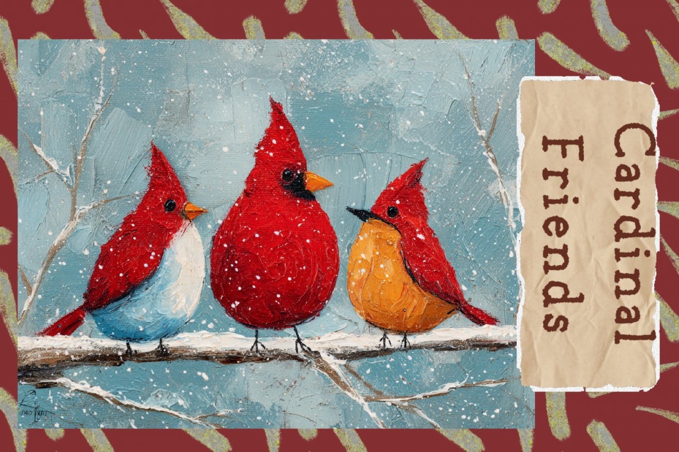-Step-by-step painting instruction from an experienced instructor. Each student will paint three happy cardinal friends on a snow covered tree branch.