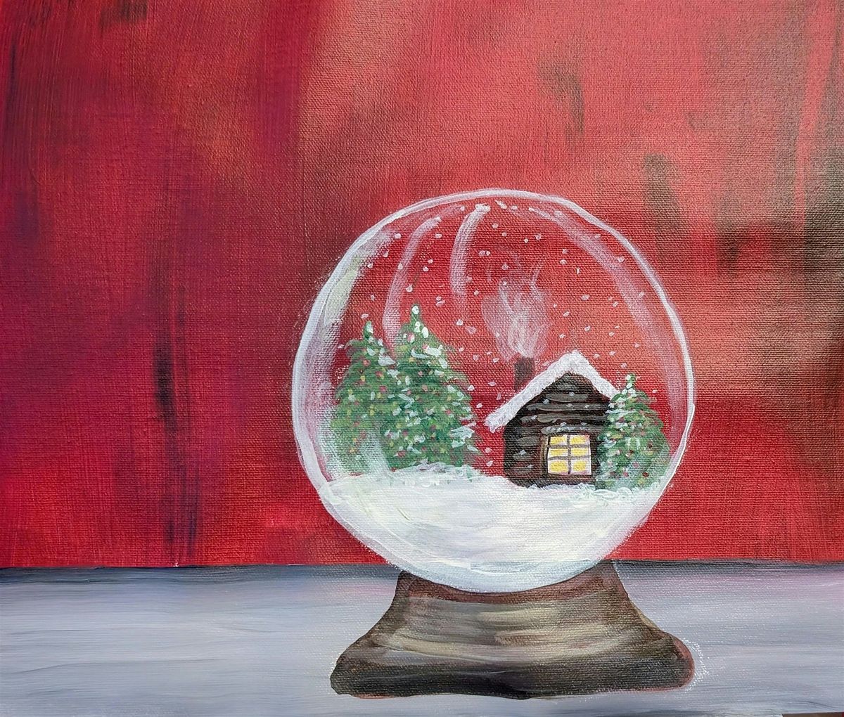 Join us at Barnfire Mesquite Grill for an afternoon of creativity and FUN! You will enjoy step by step instruction from Linda for painting on a 12X16 canvas COZY CABIN SNOW GLOBE in acrylic paint while sipping on some wine or cocktails and having a BLAST with your new friends! NO ART SKILLS REQUIRED. We provide all your supplies including canvas, paints, brushes and aprons. Price does not include beverages however they are available for purchase at the event. Buy your ticket now because seating is limited to 20. Tell your friends too so you can sit together!Please arrive 15-20 minutes ahead to check in, grab your beverages and find your seat., Be prepared to relax , get creative and HAVE FUN!! We will help you step by step through your painting. You don't have to stick to our painting. Please feel free to let your creative juices flow by changing colors or even subject matter. We are all here to have a fantastic fun time!