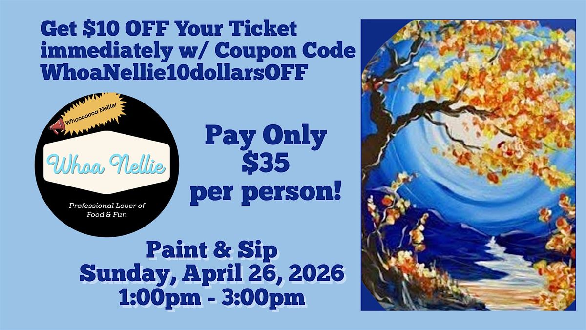 The next “WHOA NELLIE” event we have scheduled is a PAINT & SIP! 🎨 Featured art is the image we will all be painting.