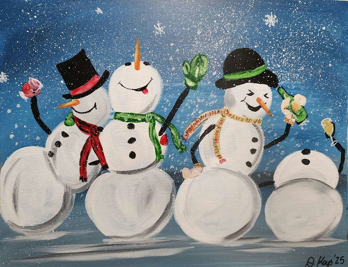 Let's have some fun with this Autumn season! join us at BlackRock Brewers for an evening of creativity and FUN! You will enjoy step by step instruction from our instructors for painting FROSTIES GONE WILD on a 16X20 canvas. We will be creating with acrylic paint while sipping on some delicious craft beers and having a BLAST with old and new friends! NO ART SKILLS REQUIRED. We provide all your supplies including canvas, paints, brushes and aprons. Price does not include beverages however they are available for purchase at the event. Buy your ticket now because seating is limited to 15. Tell your friends too so you can sit together! Please arrive 15-20 minutes ahead to check in, grab your beverages and find your seat., Be prepared to relax , get creative and HAVE FUN!!We will help you step by step through your painting. Please feel free to let your creative talent flow! We are all here to have a fantastic fun time!