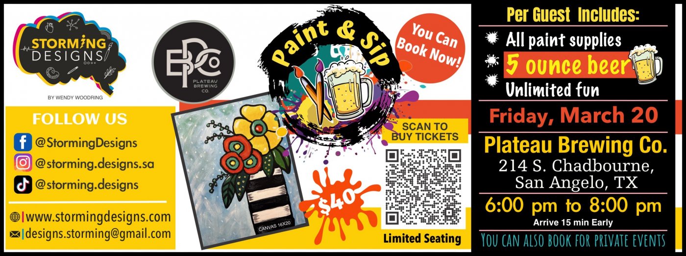 🙌Come join us for a fantastic Paint & Sip event in San Angelo!Â