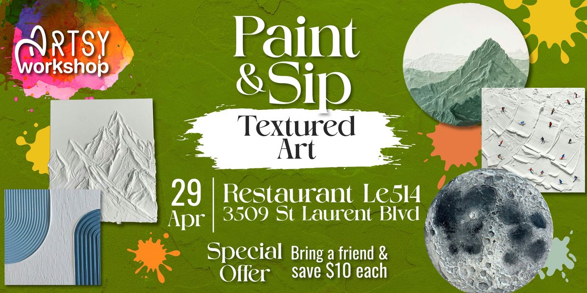 Join us for a creative night out at Le 514 for our Textured Art Workshop, a unique Paint & Sip experience where art meets texture and self-expression.