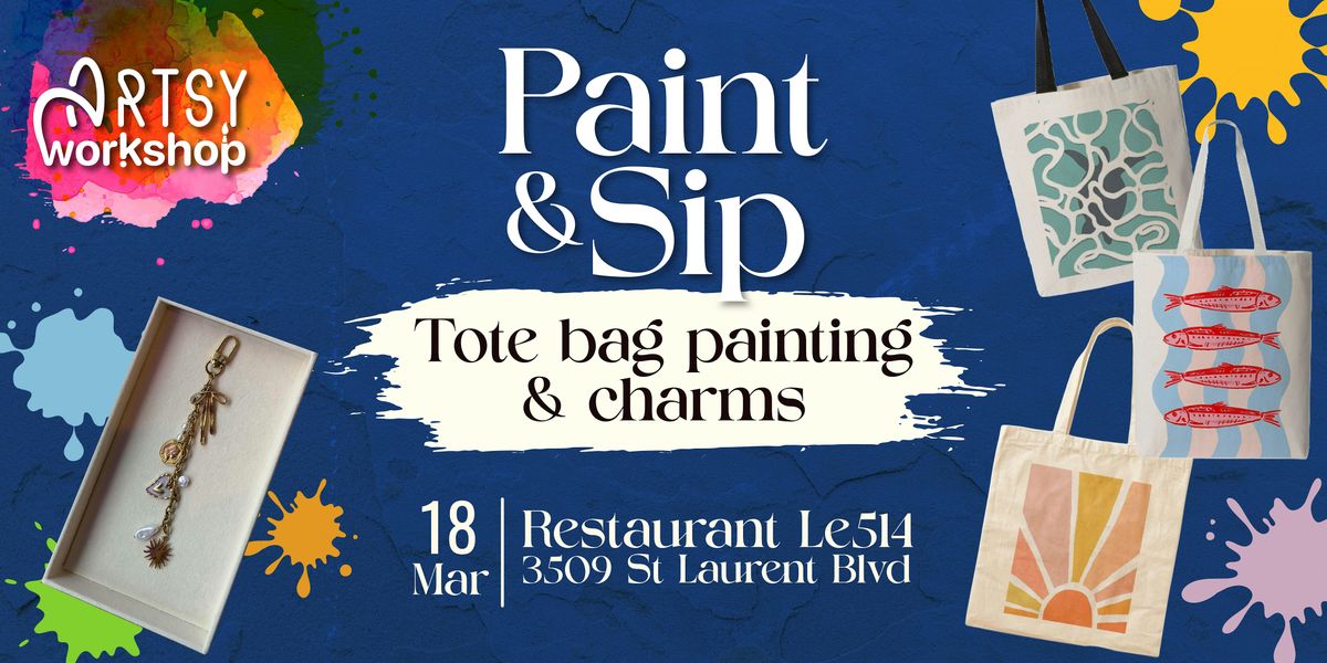 Une expérience créative de type Paint & Sip où vous pourrez concevoir et peindre un sac fourre-tout en toile de haute qualité dans une ambiance conviviale et détendue — avec une touche créative exclusive grâce à cette collaboration spéciale.