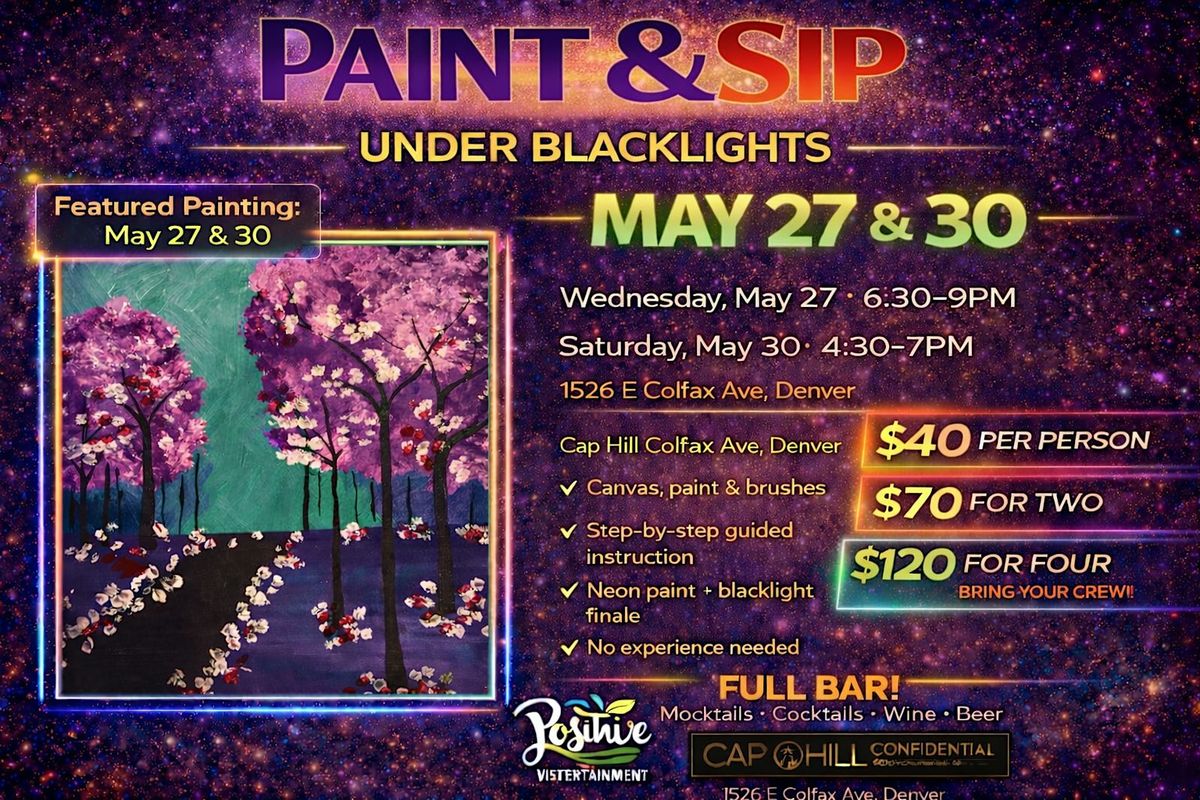 As the night builds, your painting comes to life with neon accents and a blacklight reveal, turning your artwork into something truly unique.