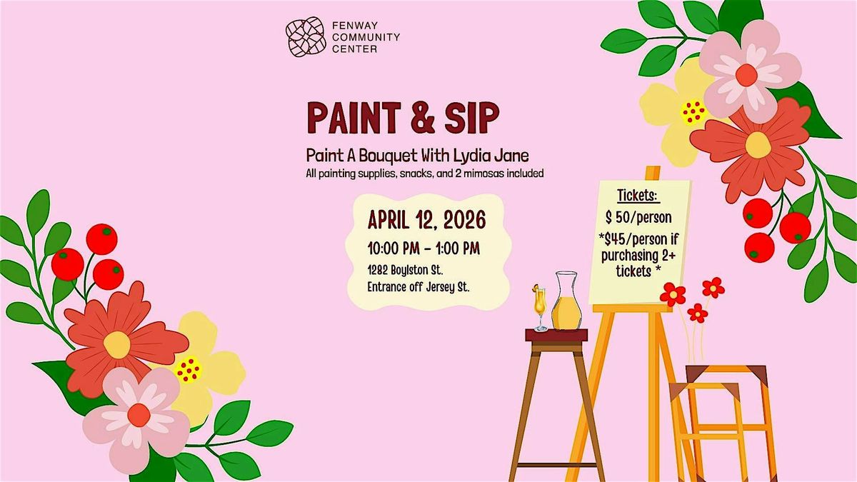 Join us for a 3 hour paid class with Lydia Jane! All painting supplies, snacks and 2 mimosas are included in the ticket price. This event promises a fun afternoon & a work of art to take home, and as a bonus proceeds directly benefit the Fenway Community Center!
