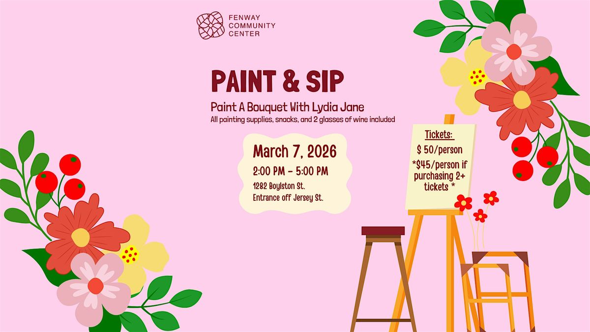 Join us for a 3 hour paid class with Lydia Jane! All painting supplies, snacks and 2 glasses of wine are included in the ticket price. This event promises a fun afternoon & a work of art to take home, and as a bonus proceeds directly benefit the Fenway Community Center!