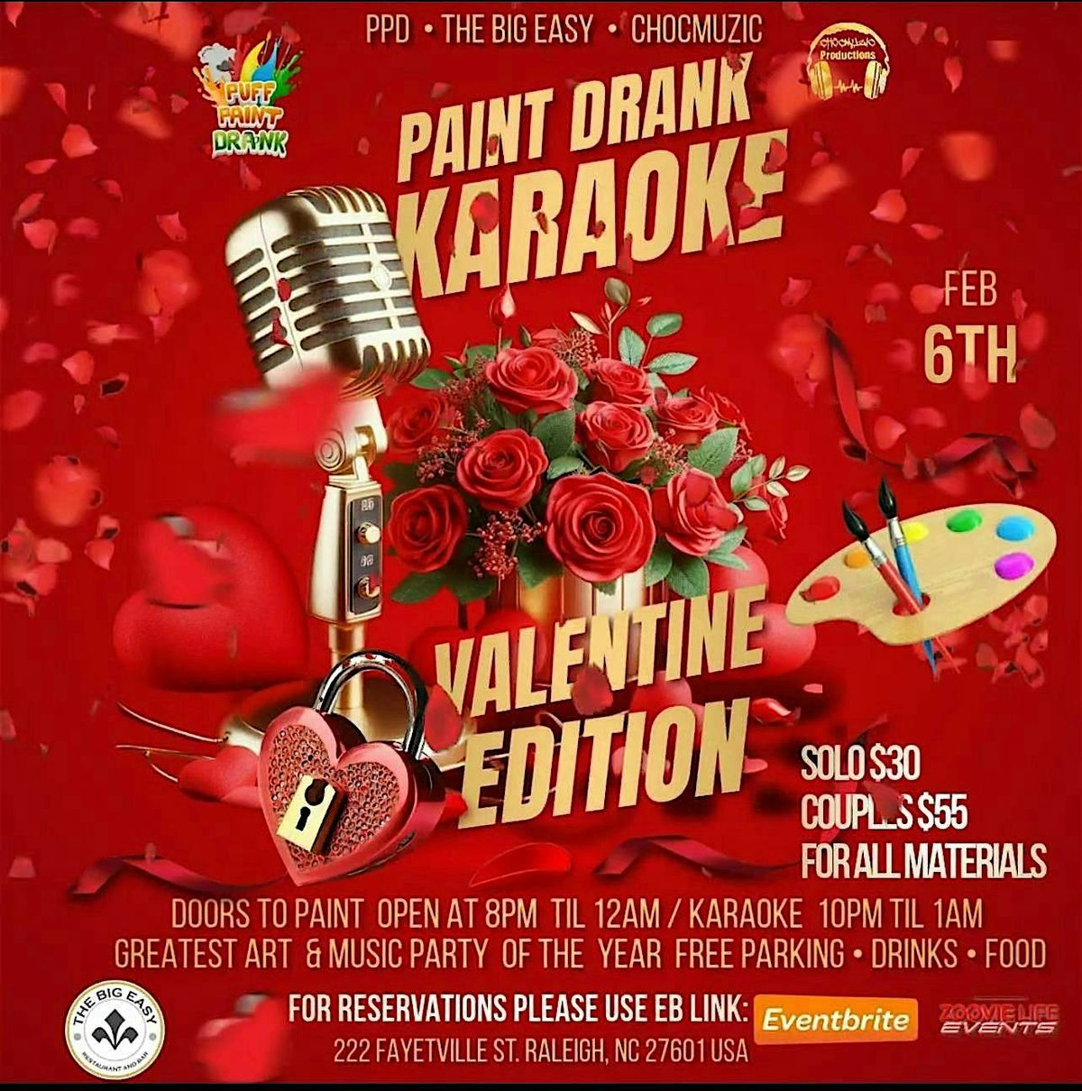 Paint Drank Karaoke! Singles, Groups & Couples welcome for the ultimate art + music party at The Big Easy downtown Raleigh