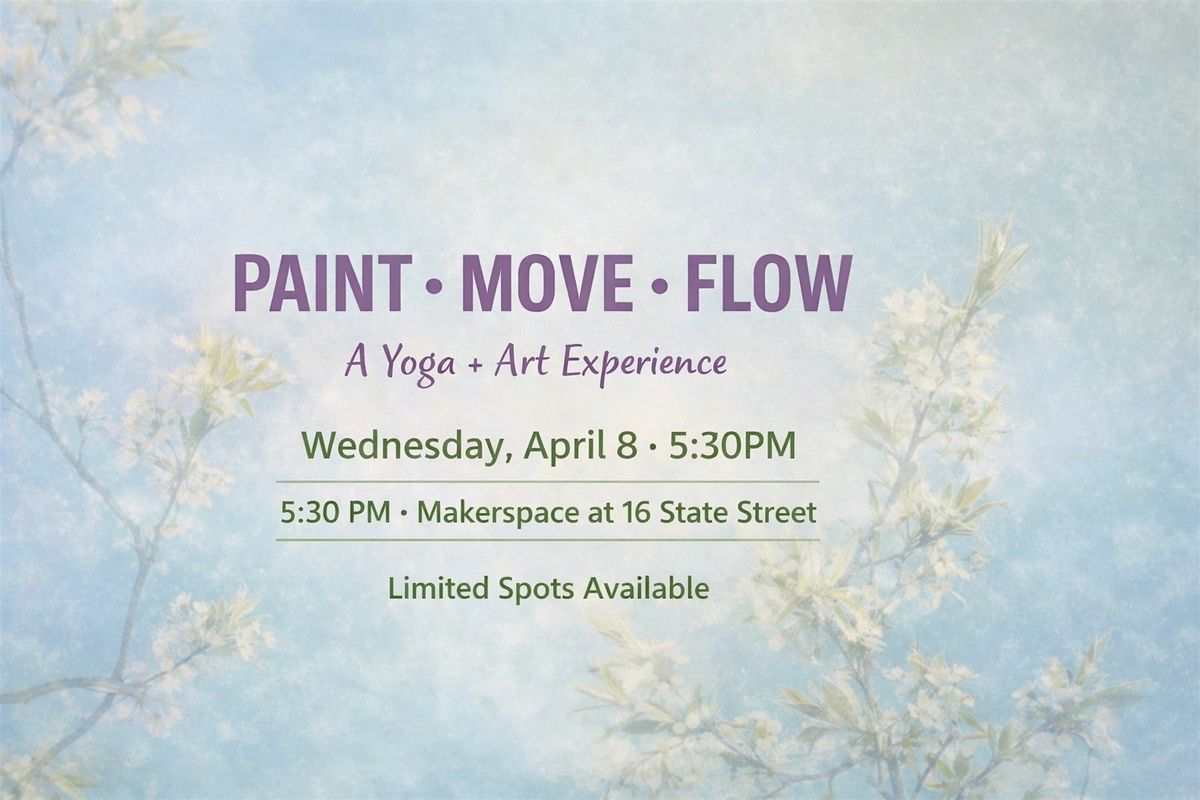 Paint, Move & Flow is a beginner friendly wellness class that combines yoga, guided watercolor painting, and a relaxing sound bath into one 75 minute experience. The class is designed to help participants move their bodies, explore creativity, and unwind in a supportive and welcoming environment. No prior experience in yoga or art is needed. After the session, guests are invited to stay, hang out, and enjoy time connecting with the community.