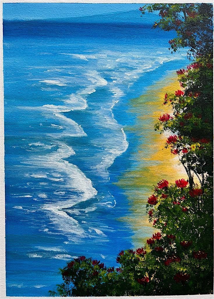 Paint n Chill Sat 3pm with Free Drink @Auckland - Seascape with Pohutukawa
