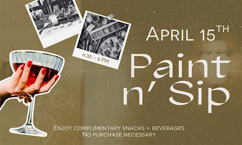 Welcome to Paint n' Sip at Aveline! To celebrate World Art Day, join us on April 15, 2026 at 6:30 PM for a fun evening. Let your creativity flow as you create your masterpiece while enjoying a relaxed atmosphere with friends. No prior painting experience is needed - just come ready to have a good time! See you there!