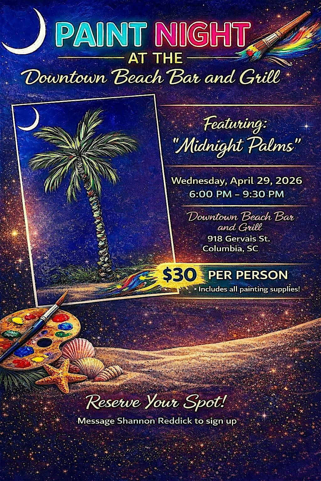 Join us for a fun, relaxing night of painting, music, and good vibes at Downtown Beach Bar and Grill!