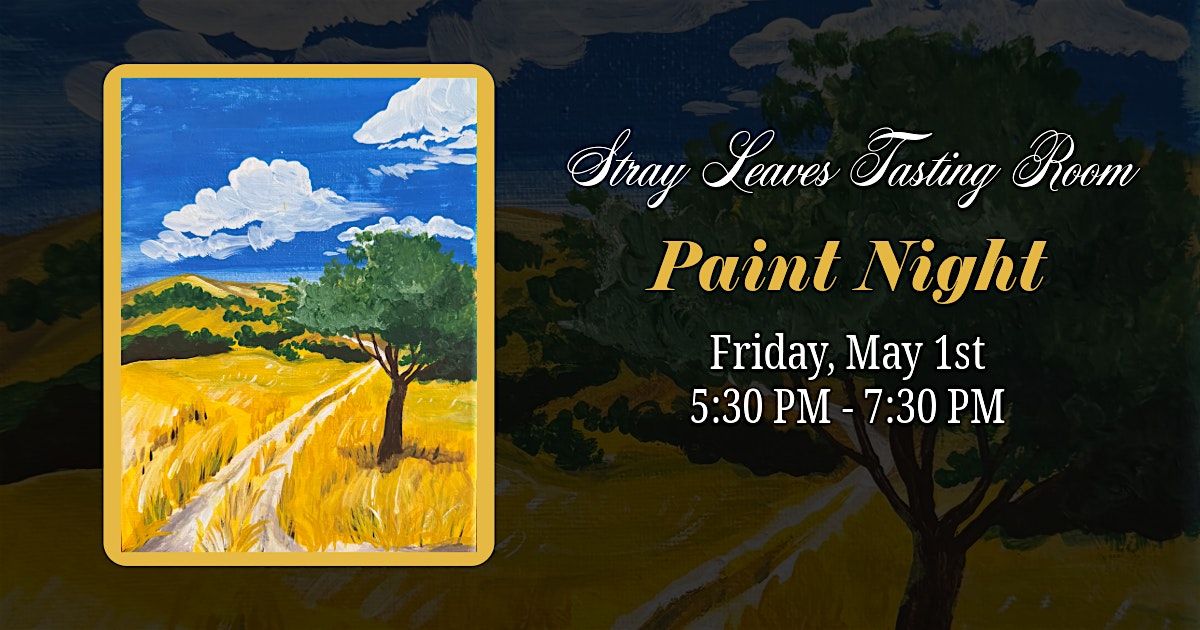 Join us for a fun and relaxed Paint Night at Stray Leaves Vineyard! Whether you're a pro or just want to try something new, it's a great way to unwind and get creative. We'll meet on May 1, 2026 at 5:30 PM (Pacific Daylight Time). Bring your friends, enjoy the vibes, and let's make some art together!
