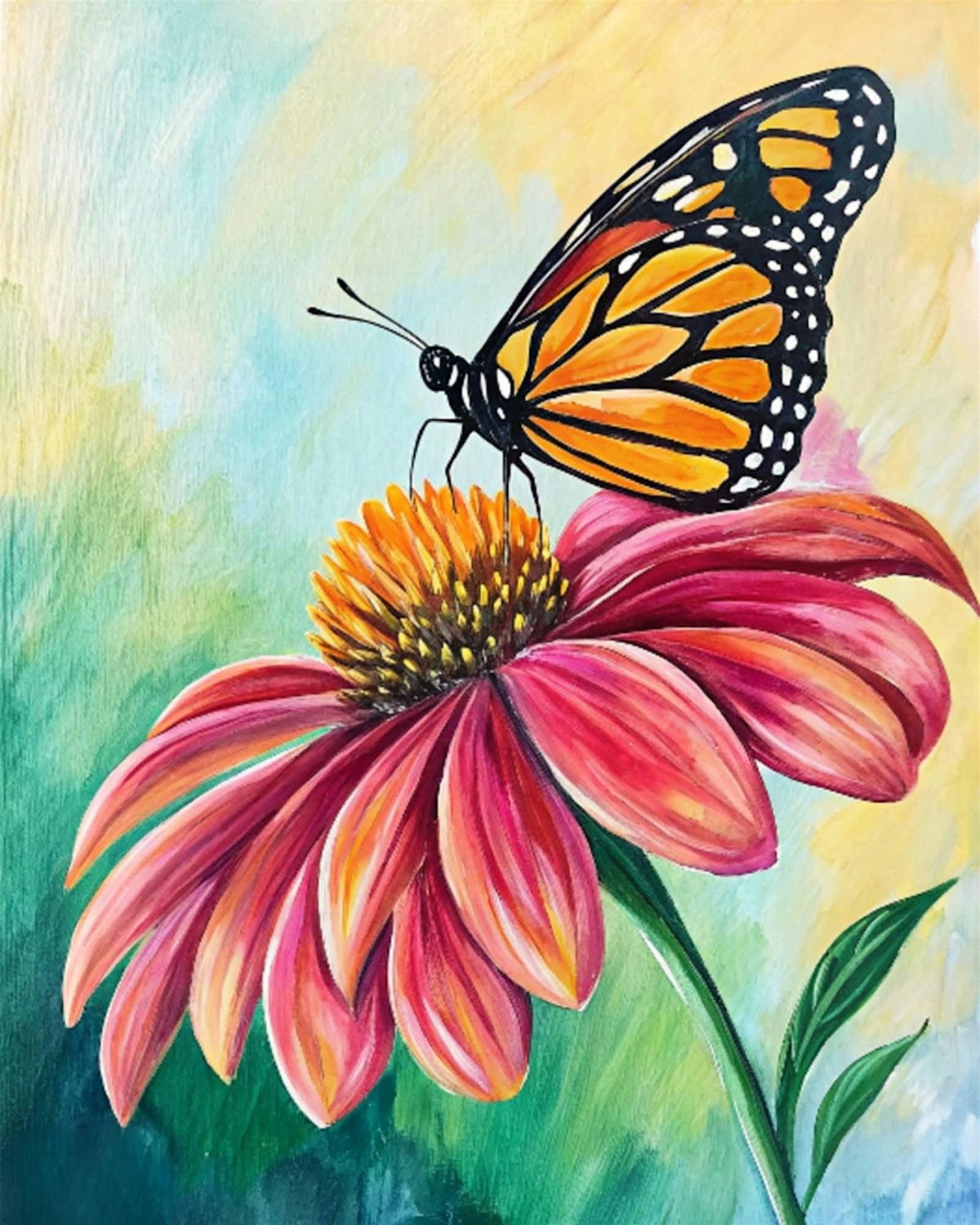 Paint Night in Maple Ridge creating the beauty Butterfly Canvas