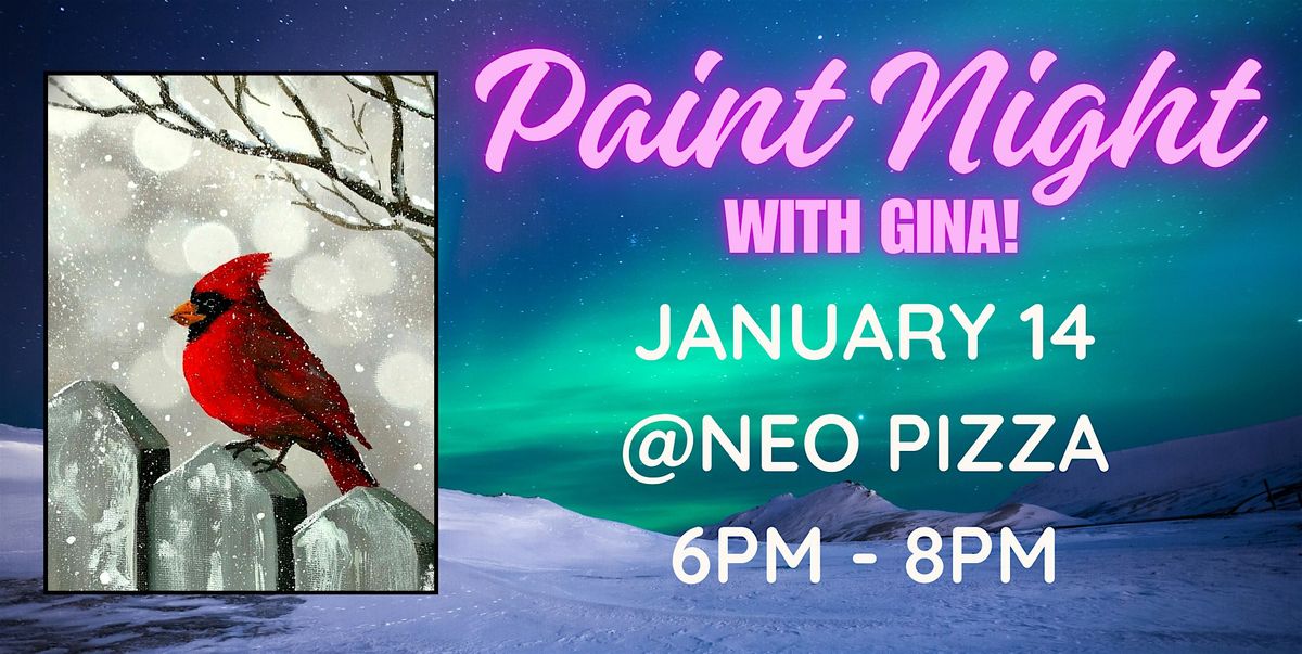 Come out for a fun night painting at Neo Pizza (next to Target)! Get your creativity flowing as Gina guides you every step of the way. Whether you love to paint or want to try it out, there is a seat for you! Put on an apron, relax, and follow along. Customize the painting along the way! Gina will be available for support and a boost of encouragement!