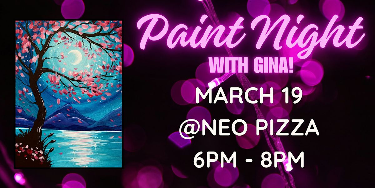 Come out for a fun night painting at Neo Pizza (next to Target)! Get your creativity flowing as Gina guides you every step of the way. Whether you love to paint or want to try it out, there is a seat for you! Put on an apron, relax, and follow along. Customize the painting along the way! Gina will be available for support and a boost of encouragement!