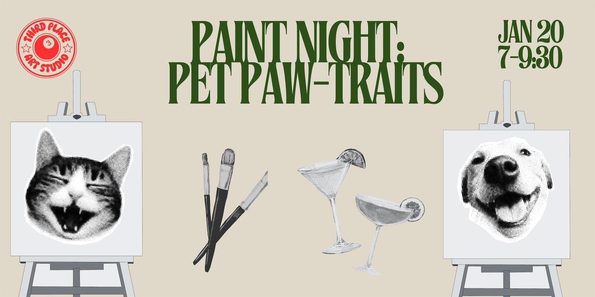 Turn your favorite pet photo into a one-of-a-kind painting! This guided paint night is perfect for all skill levels, whether you’re a beginner or a seasoned creative. You’ll be walked step-by-step through the process in a fun, relaxed environment while creating a custom portrait of your beloved pet.