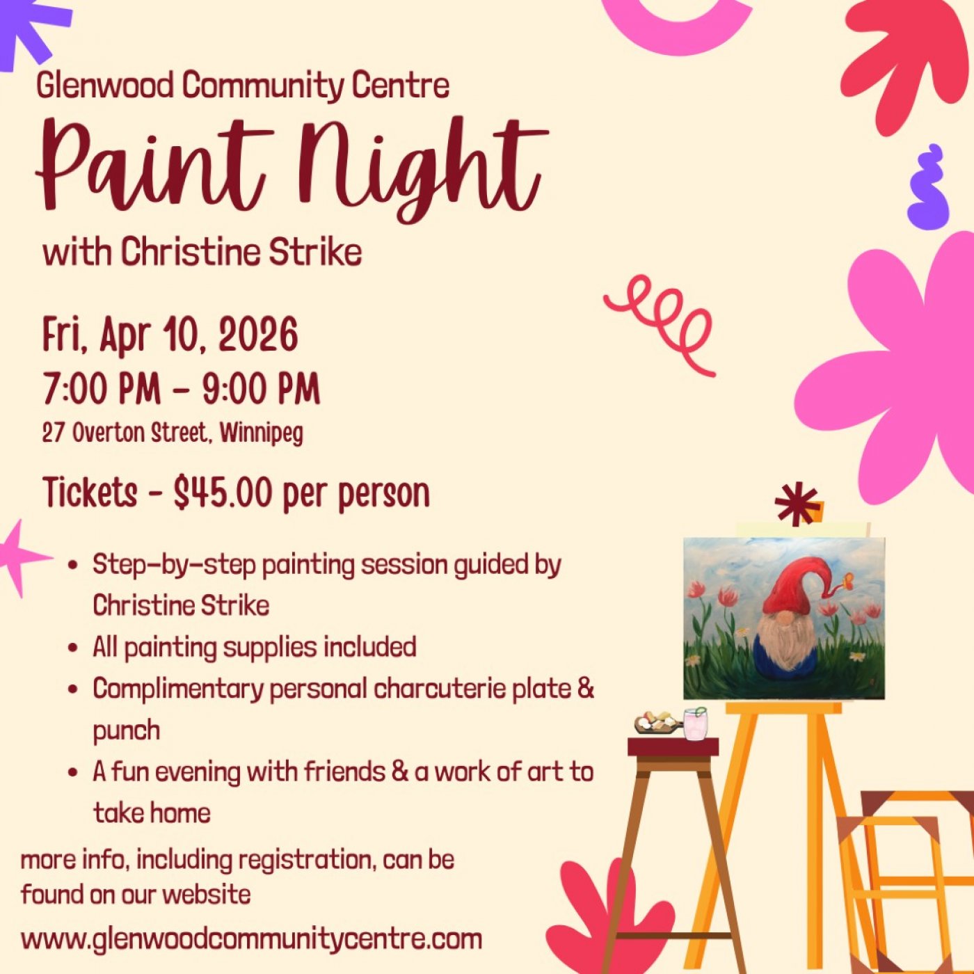 To register, please complete our online Google form which can be found on our website: https://www.glenwoodcommunitycentre.com/paintnight.