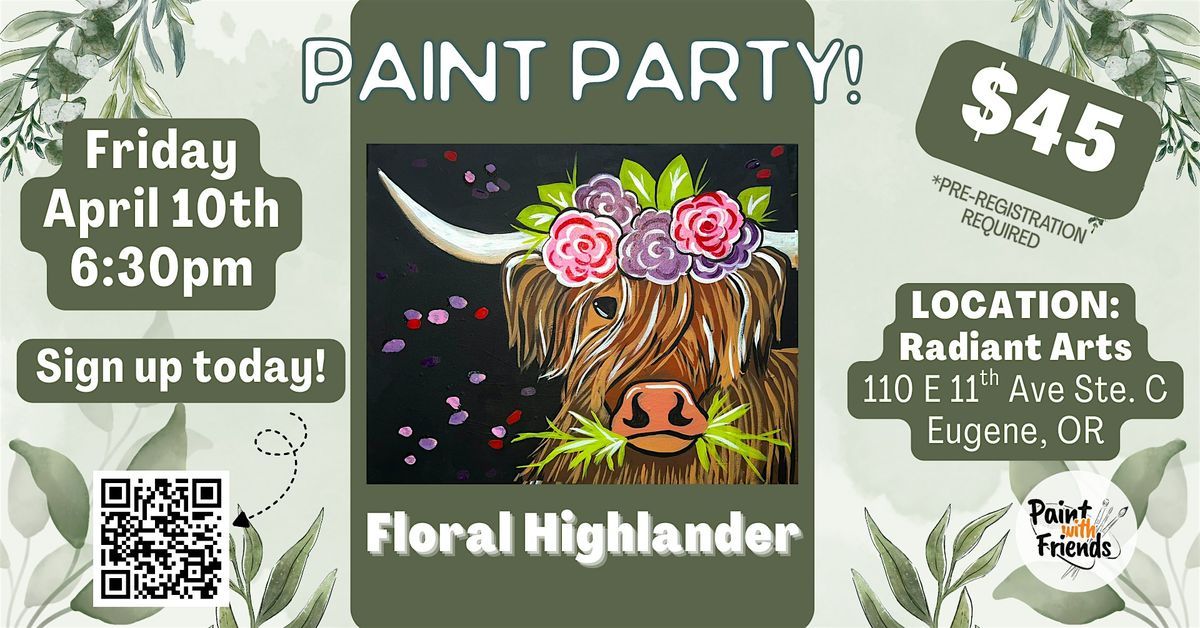 Paint Party - Fri 4/10 6:30pm - Spring Highland Cow at Radiant Arts