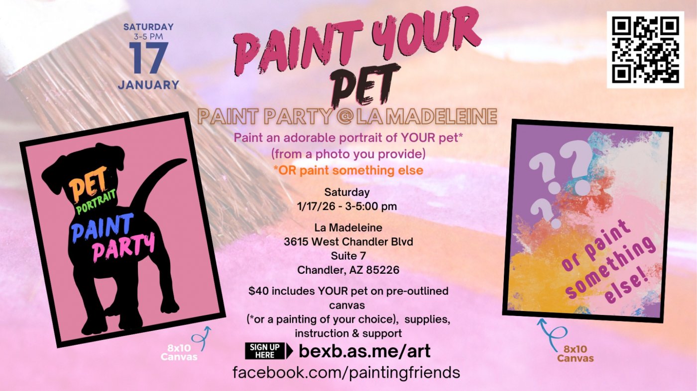 No pet? No problem - still come paint with us. Go to facebook.com/PaintingFriends to find what you'd like to paint & let me know