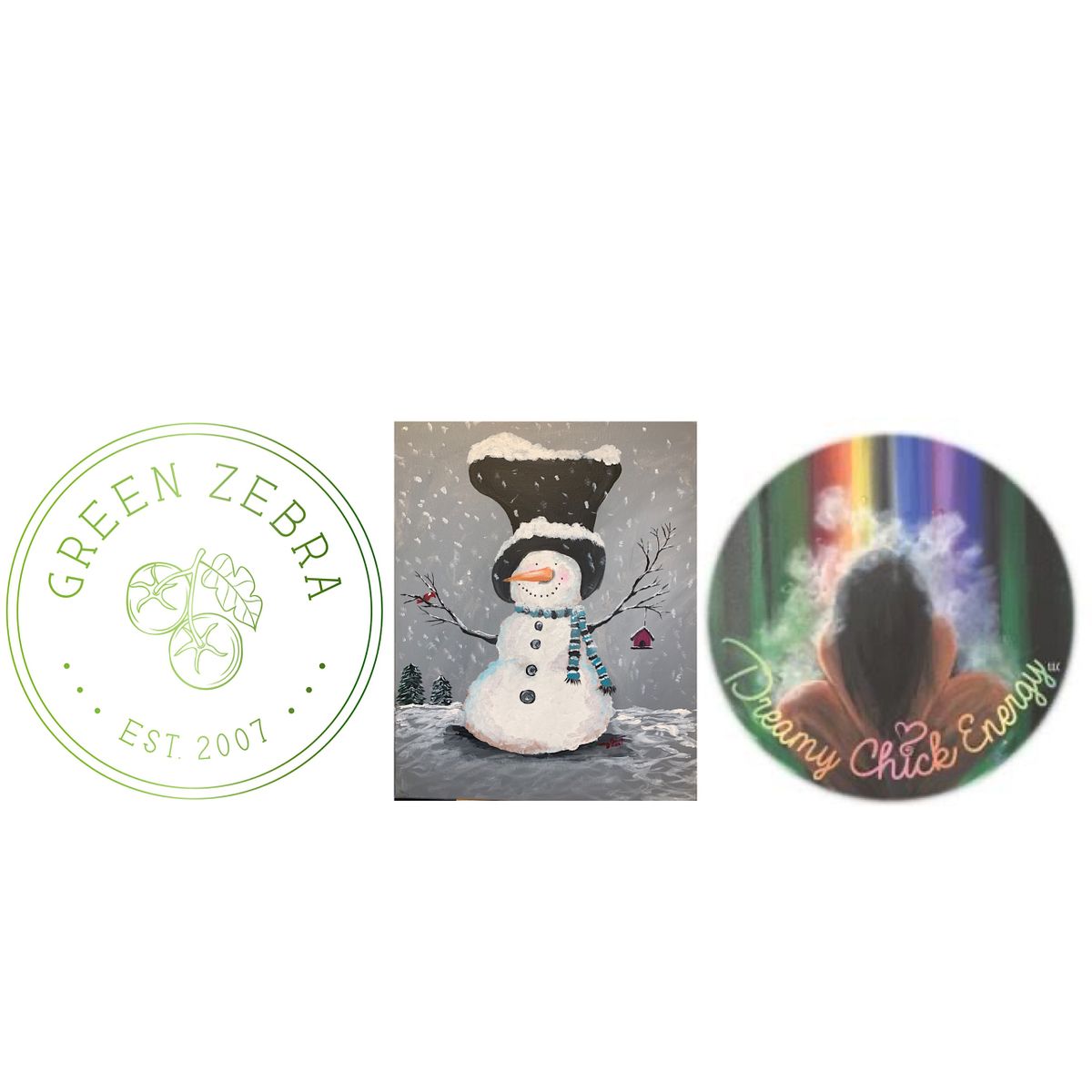 Painting was determined by management of Green Zebra Catering and we will all be painting this beautiful snowman with his bird friends! Limited seating so don't wait you don't want to miss this fun night!!