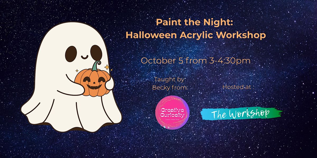 Step into the season of shadows and color! In this hands-on acrylic painting workshop, we’ll use canvas as our stage to capture the spirit of Halloween—fiery pumpkins, glowing moons, haunted houses, or whatever spooky scene sparks your imagination.