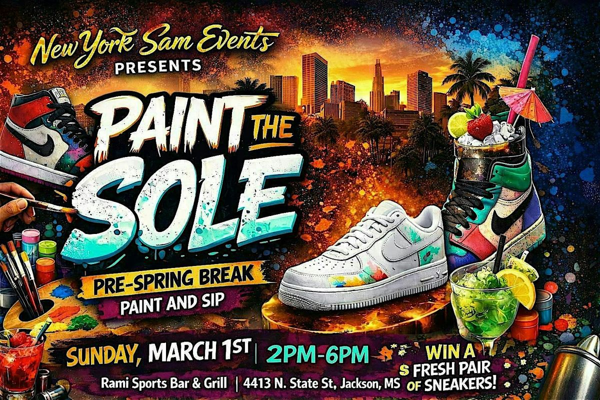 High-energy sneaker-themed paint & sip experience happening Sunday March 1st, at Rami's Sports Bar and Grill, curated by New York Sam Events. This isn’t your average paint and sip, it’s where art, sneaker culture, cocktails, and music collide.