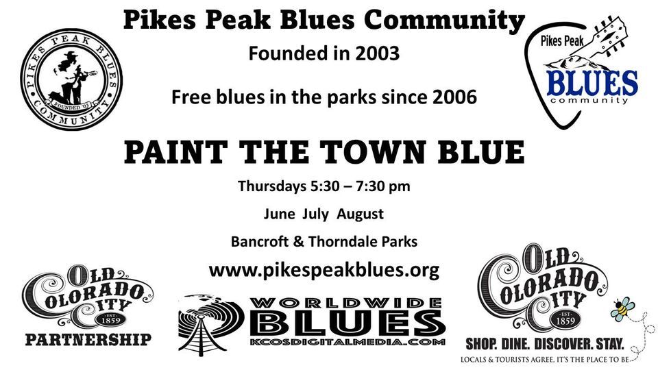 30 years is a REALLY long time for any band! Big Back Yard has done it! Come out and celebrate with us. You should know it's always a great performance. There will be food trucks too! The Pikes Peak Blues Community has been doing Paint the Town Blue Since 2006. Always a free event featuring blues music as part of the mission of Keeping the Blues Alive in the Pikes Peak region. PPBC was founded in 2003, now celebrating its 20-year anniversary. This year PPBC will be celebrating with 8 features, 4 at Bancroft Park and 4 on the green grass at Thorndale Park with food trucks.